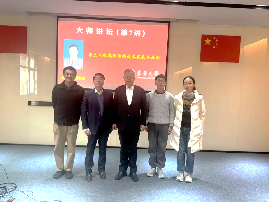 12月25至26日,上海市住建委“低碳土工材料与环境岩土工程技术创新中心”首席专家、东南大学首席教授刘松玉和中心技术委员会委员、中国科学院武汉岩土力学研究所二级研究员孔令伟应邀莅临东华大学,参加中心揭牌仪式暨技术委员会第一次会议,并分别以“岩土工程减污固碳技术发展与应用”“膨胀土边坡水力作用失稳特征与安全性评价方法”为题,为师生带来精彩的学术报告。会议由环境科学与工程学院副院长李方主持。