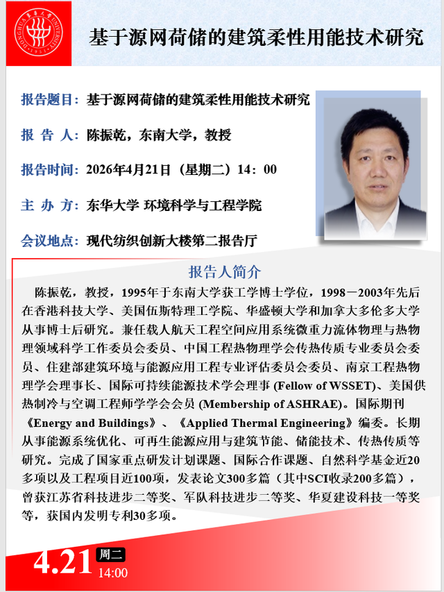 学术讲座:基于源网荷储的建筑柔性用能技术研究